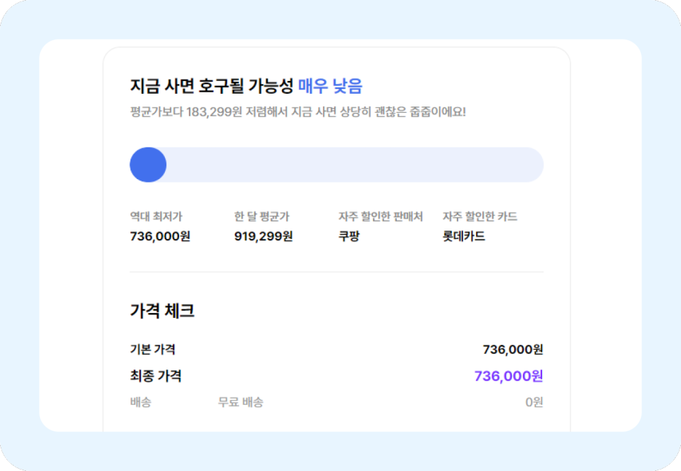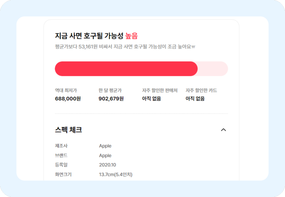 평균가보다 약 18만 원 정도 저렴해서 지금 사면 정말 좋은 구매가 될 것 같네요!