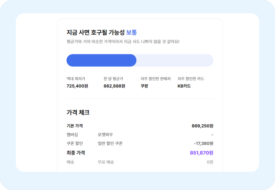 이 제품을 얼마에 구매했고, 현재 사공사의 최저가는 얼마인지 알아볼게요!