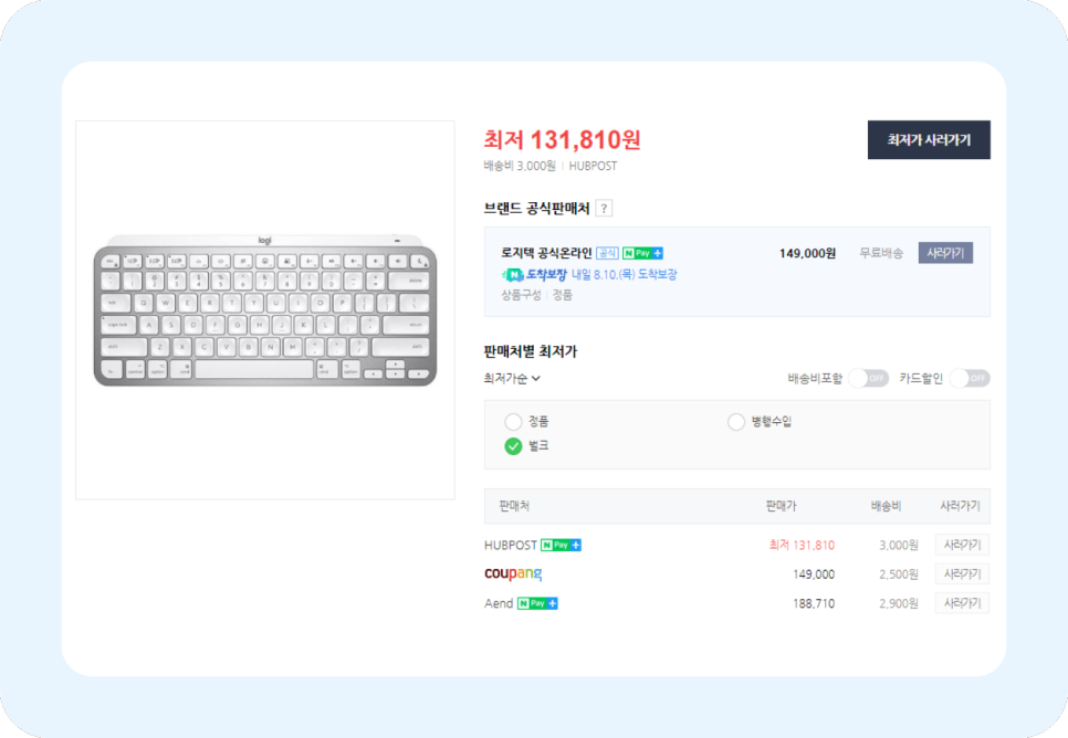 그다음엔, 인기 많은 MX keys 키보드의 가격에 대해 알아보겠습니다