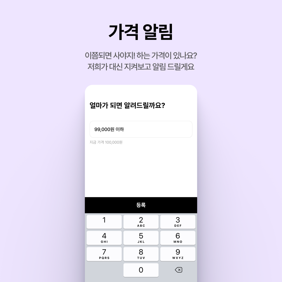 관심 추가한 제품이 원하는 가격이 되면 알려드려요! 기존에 많은 사용자분들이 추가되었으면 하는 기능으로 "알림"을 말씀해 주셨는데요. 웹에서는 알림을 드릴 수 있는 방법이 한정적이라 아쉽게도 추가하지 못했던 기능이에요. 관심 추가한 뒤 원하는 가격을 설정하면 알림을 받을 수 있어요. 설정한 가격 이하로 가격이 떨어지면 알림이 가니 맘 편히 세일을 기다려보세요!